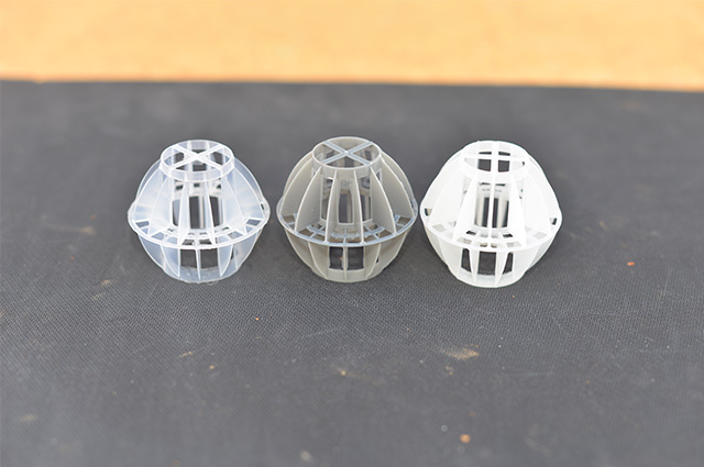多面空心球中間鏤空結(jié)構(gòu)形成空隙大,不易被阻塞的特性。這種結(jié)構(gòu)在空氣洗滌、廢氣吸收、灰塵過(guò)濾等廢氣處理工程方面應(yīng)用,具有處理風(fēng)量大、阻力小的特點(diǎn)。由于多面空心球的空隙中有較高的滯液量,可使塔內(nèi)液體停留時(shí)間長(zhǎng),從而增加了氣體與液體的接觸面積和接觸時(shí)間,便廢氣得到充分吸收處理。