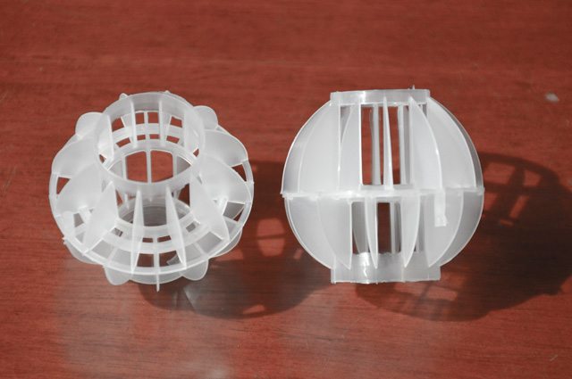 多面空心球中間鏤空結(jié)構(gòu)形成空隙大,不易被阻塞的特性。這種結(jié)構(gòu)在空氣洗滌、廢氣吸收、灰塵過(guò)濾等廢氣處理工程方面應(yīng)用,具有處理風(fēng)量大、阻力小的特點(diǎn)。由于多面空心球的空隙中有較高的滯液量,可使塔內(nèi)液體停留時(shí)間長(zhǎng),從而增加了氣體與液體的接觸面積和接觸時(shí)間。